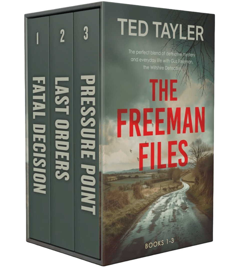 Cover artwork and visual material from Ted Tayler’s books, showcasing the look and feel of his mystery and thriller series.